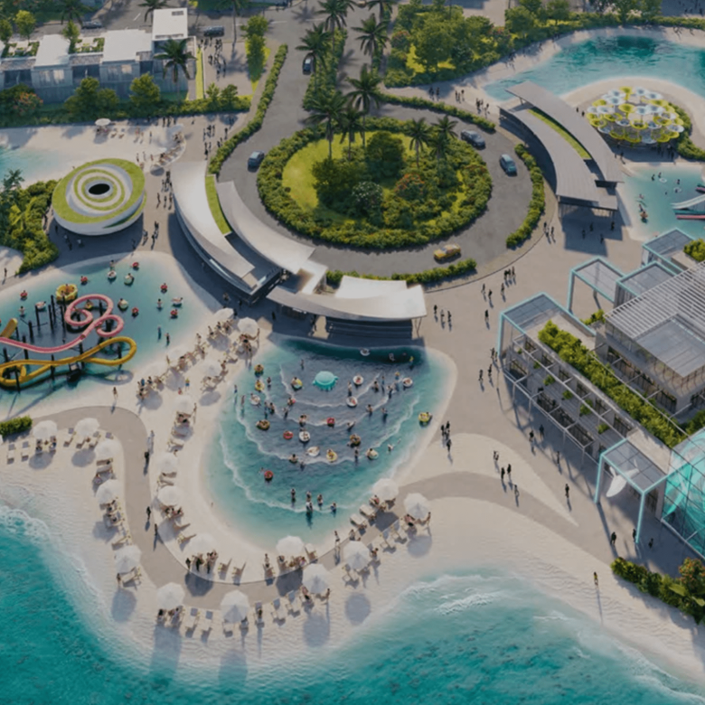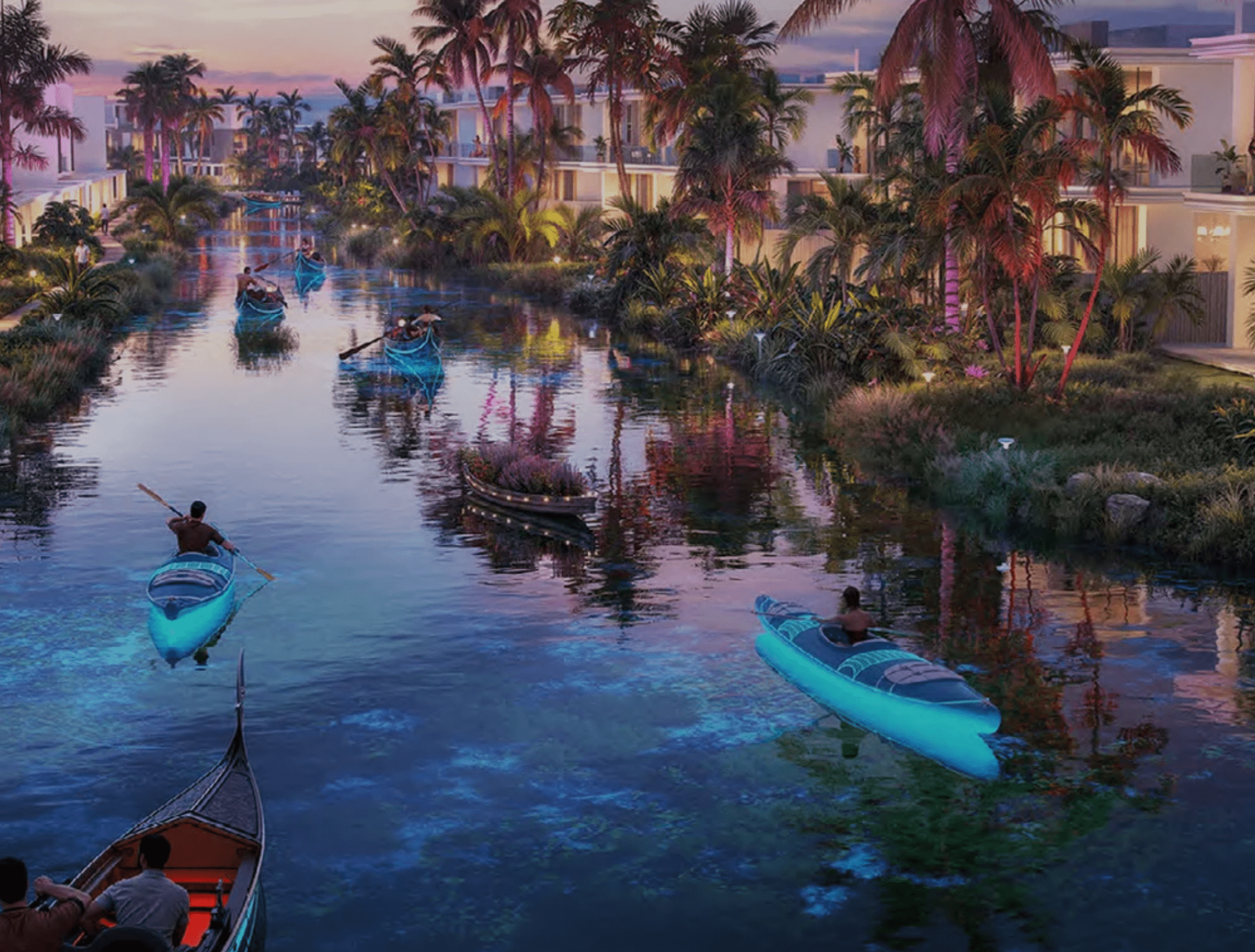 - Crystal Lagoons & Inland White Beaches – serene water bodies and sandy shores within the community Jungle River – a meandering waterway enhancing the tropical ambiance