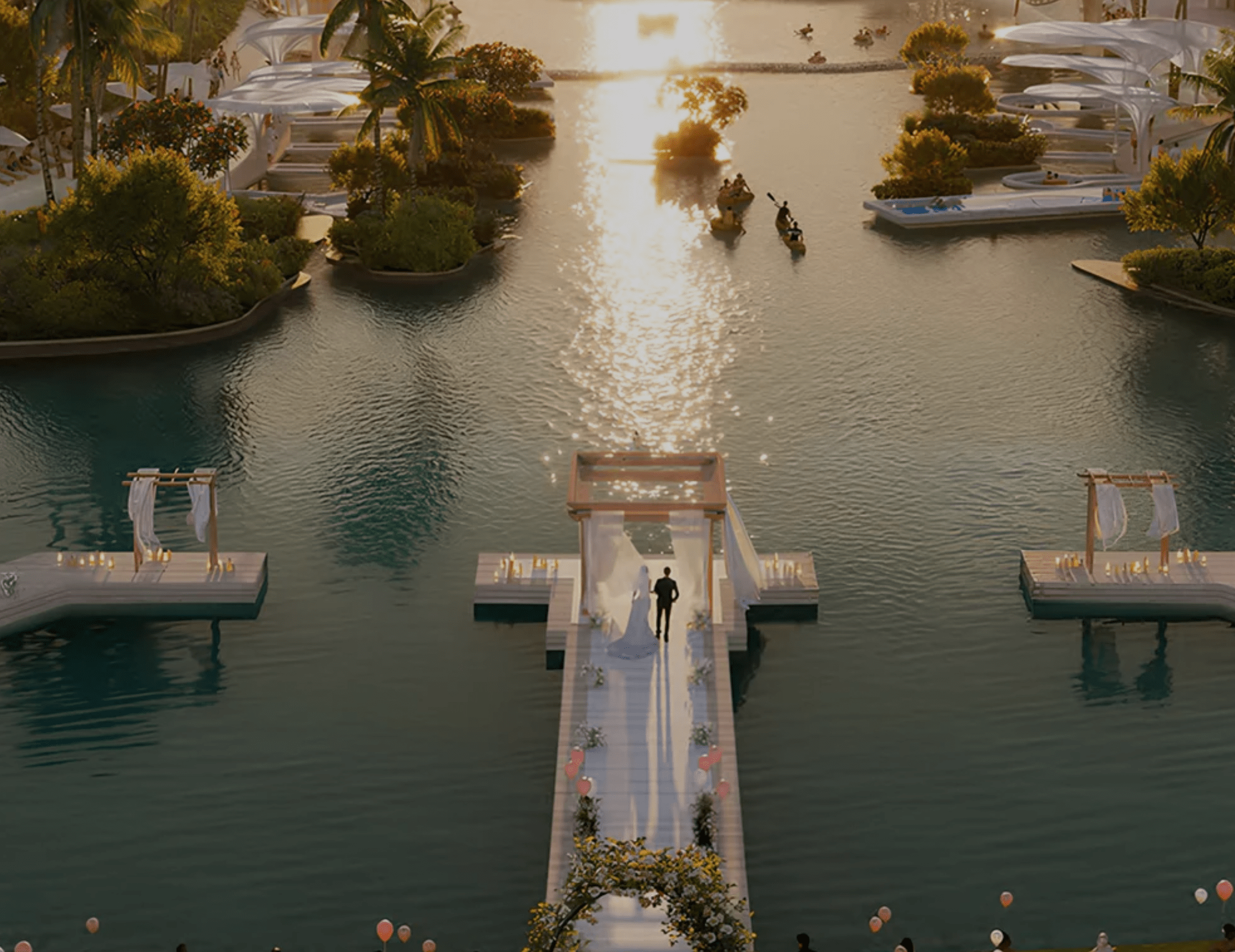 - Yoga Floating Decks – dedicated areas for yoga and wellness over water