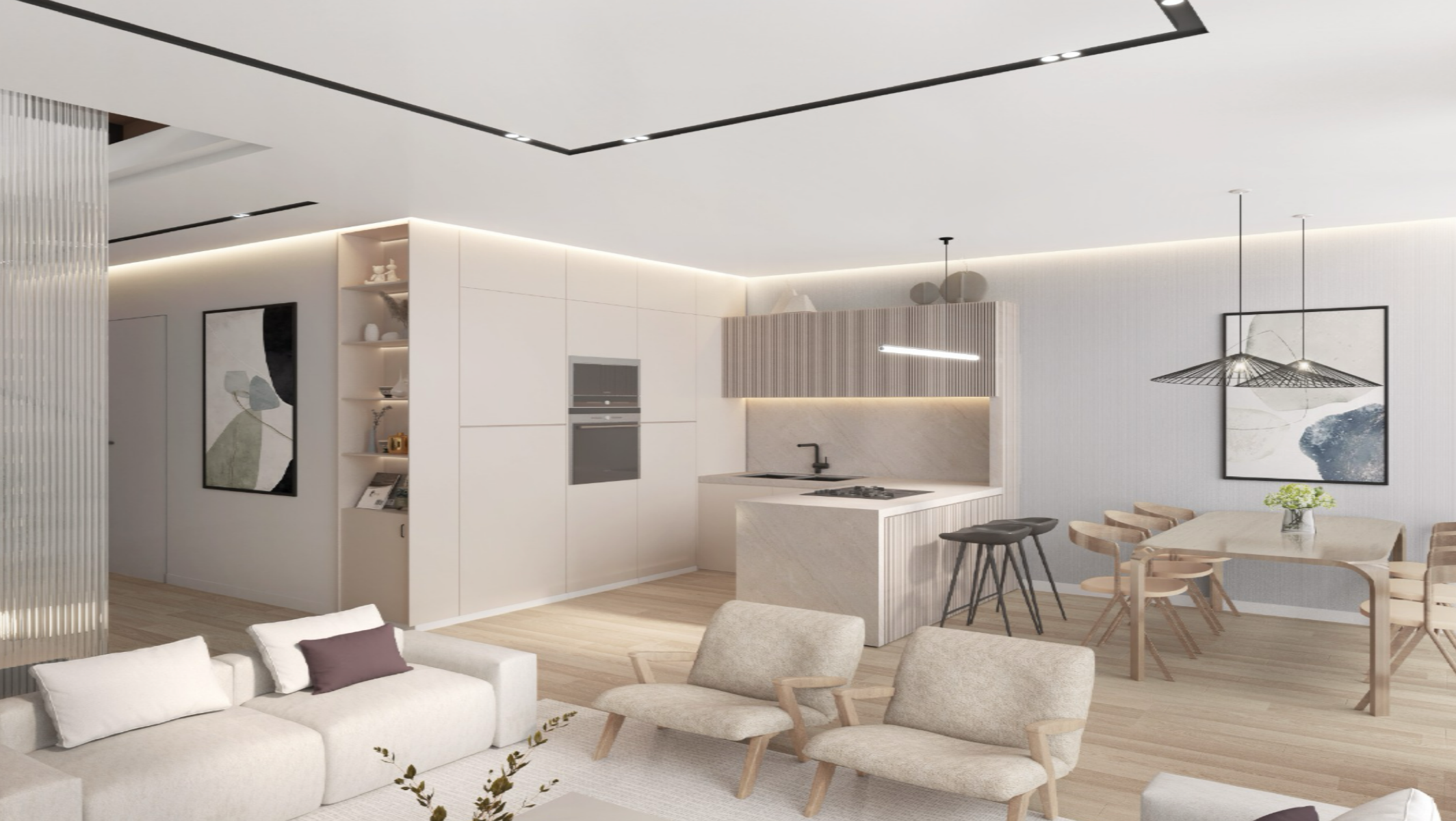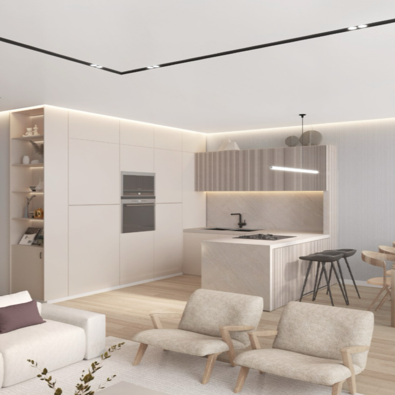 Each residence has been crafted to maximize light, space, and functionality. Private balconies and terraces invite outdoor living, while interiors feature contemporary kitchens with premium cabinetry and countertops, fully tiled bathrooms, and central air conditioning. Select units include maid’s rooms, laundry spaces, private bedrooms with en-suite bathrooms, and even the option for internal elevators — all tailored to modern family life.